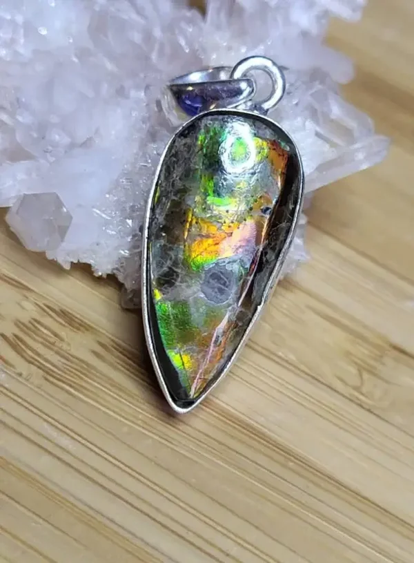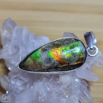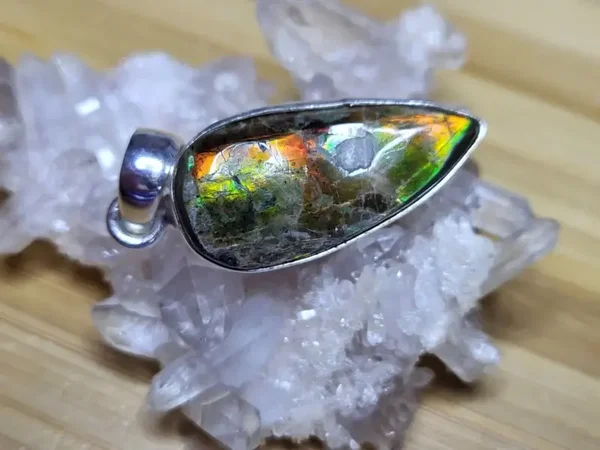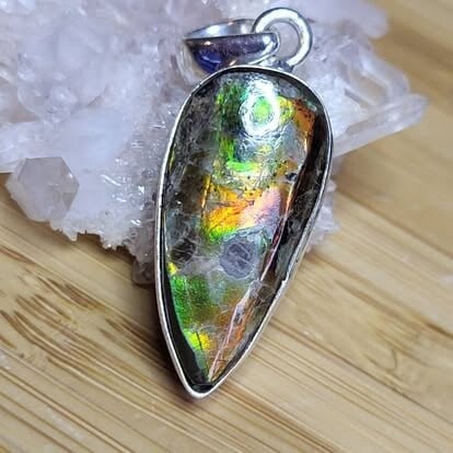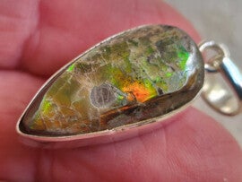 Ammoliet is het versteend materiaal van een gefossiliseerde ammoniet schelp met een parelmoerachtige glans met vooral rood-, groen- en geeltinten