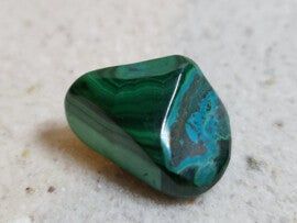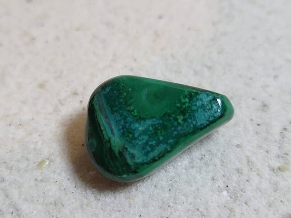 De algemene werking :Malachiet is een krachtig werkende steen. Het beschermt tegen straling, vervuiling, ongevallen en andere bronnen van negatieve energie en gevaar. De steen brengt emotionele balans en stabiliteit en maakt weerbaarder. Het vermindert angst en kan onderdrukte gevoelens en ervaringen naar de oppervlakte brengen. Hierdoor helpt het om positieve veranderingen te maken en blokkades, remmingen en negatieve gedragspatronen los te laten. Malachiet versterkt empathie en begrip en stimuleert gezonde en gelijkwaardige (vriendschappelijke) relaties. Fysiek werkt het ontgiftend, bloeddrukverlagend en versterkt het immuunsysteem en het zelf genezend vermogen van het lichaam. Daarnaast kan malachiet helpen bij astma, artritis en artrose, botbreuken, epilepsie en problemen aan het hart en de bloedvaten. De steen is met name heel geschikt voor vrouwen omdat het een positieve werking heeft op de vrouwelijke geslachtsorganen, (pre)menstruele klachten, vrouwelijke seksuele problemen (met name met een emotionele of traumatische achtergrond) en ondersteunt bij een bevalling.nr 1: 27x17mm nr 9: 22x11mm