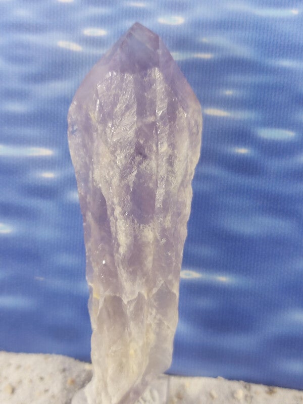 Prachtige toverstaf van amethist.( Aardsengel amethist uit Bahia) Door de punt kan je fijn de energiestraal richten op het te helen gedeelte 106x38x27mm