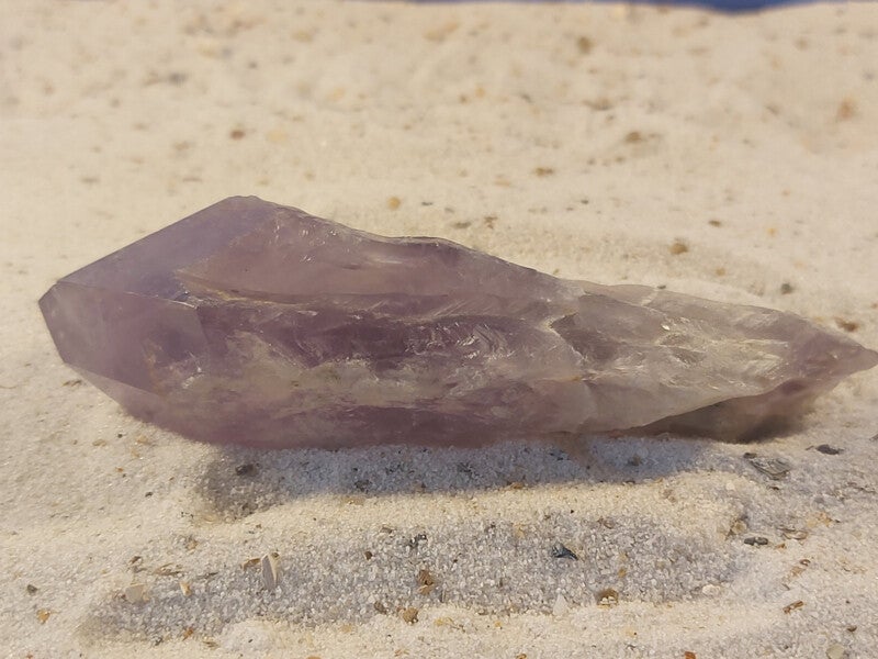 Krachtige, zuiverende en beschermende steen die werkzaam is op de hogere chakra's . Helpt je op een rustige manier terug op je pad te komen en brengt verbinding met de aartsengelen tot stand. Zorgt dat je je doel op aarde in het oog houdt of vindt en helpt bij het verwerken van tegenslagen en het doorbreken van blokkades. Fysiek is amethist goed bij heimwee, hoofdpijn , migraine, de hormonen en spijsverteringsstelsel. Heilzaam bij slaapproblemen.Amethist kalmeert en stimuleert de geest. Door rust te geven krijgt u diepere inzichten. Het zorgt voor betere concentratie en beheersing van uw vaardigheden. Een zeer krachtige en beschermende steen met een hoge trilling. Fijn bij mediteren en blokkeert de negative energieën. Helpt bij geestelijke en lichamelijke reiniging , spiritueel inzicht. Ook geschikt om een ruimte te reinigen en geeft samen met rozenkwarts en bergkristal een harmoniserende energie in uw huis.