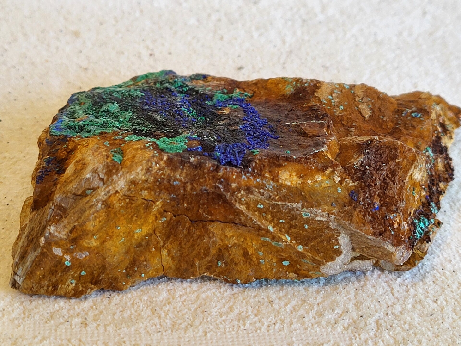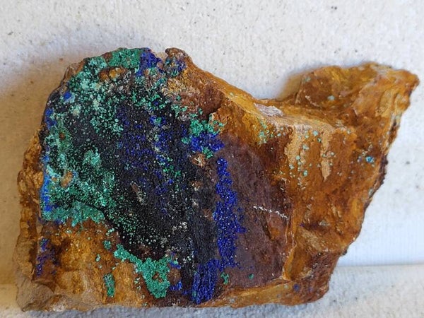 Azuriet is een blauw mineraal met een intense kleur. De oude Egyptenaren gebruikten het als pigment in cosmetica en kunstwerken, en ook in de Middeleeuwen was het een belangrijke bron voor blauwe verf. Azuriet ontstaat in de oxidatiezone van koperafzettingen, waar koperrijke oplossingen reageren met koolstofdioxide. Dit proces vindt plaats in ondiepe, zuurstofrijke omgevingen, vaak nabij het aardoppervlak. De vorming van azuriet is nauw verbonden met die van malachiet, een groen kopermineraal, en deze stenen worden vaak samen gevonden.