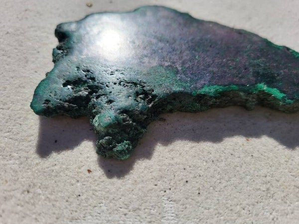 Prachtige slices malachiet met hematiet en daardoor voelen ze ook erg zwaar aan.