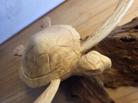 Faitrade schildpad op stronk nr 1 24x19x11cm Schildpad is van suarhout, stronk is drijfhout