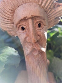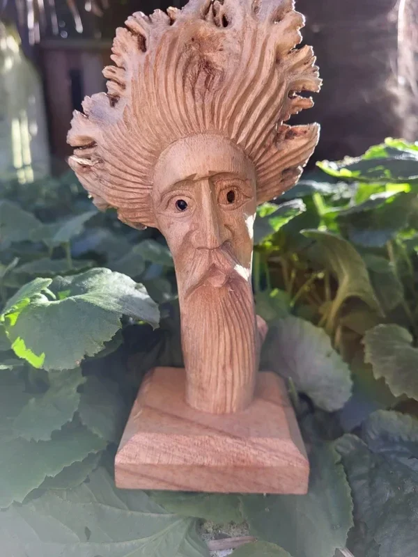 Deze prachtig gesneden ( uit de Chinaberryboom) tovenaar. 17,5x11 cm hoge product is Fairtrade dus eerlijk gemaakt.
