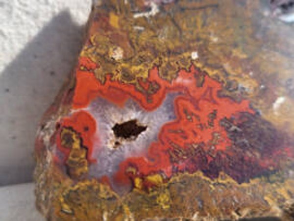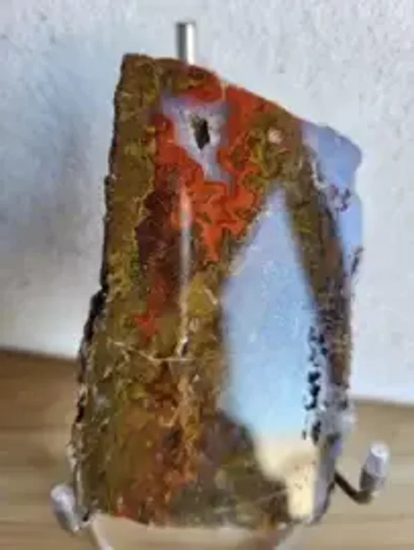 Prachtige bijzondere vlamagaat ( door verkoper zelf gevonden, gezaagd en gepolijst maakt het extra leuk) gevonden in Marokko( Kerrouchen) 80x40x10mm