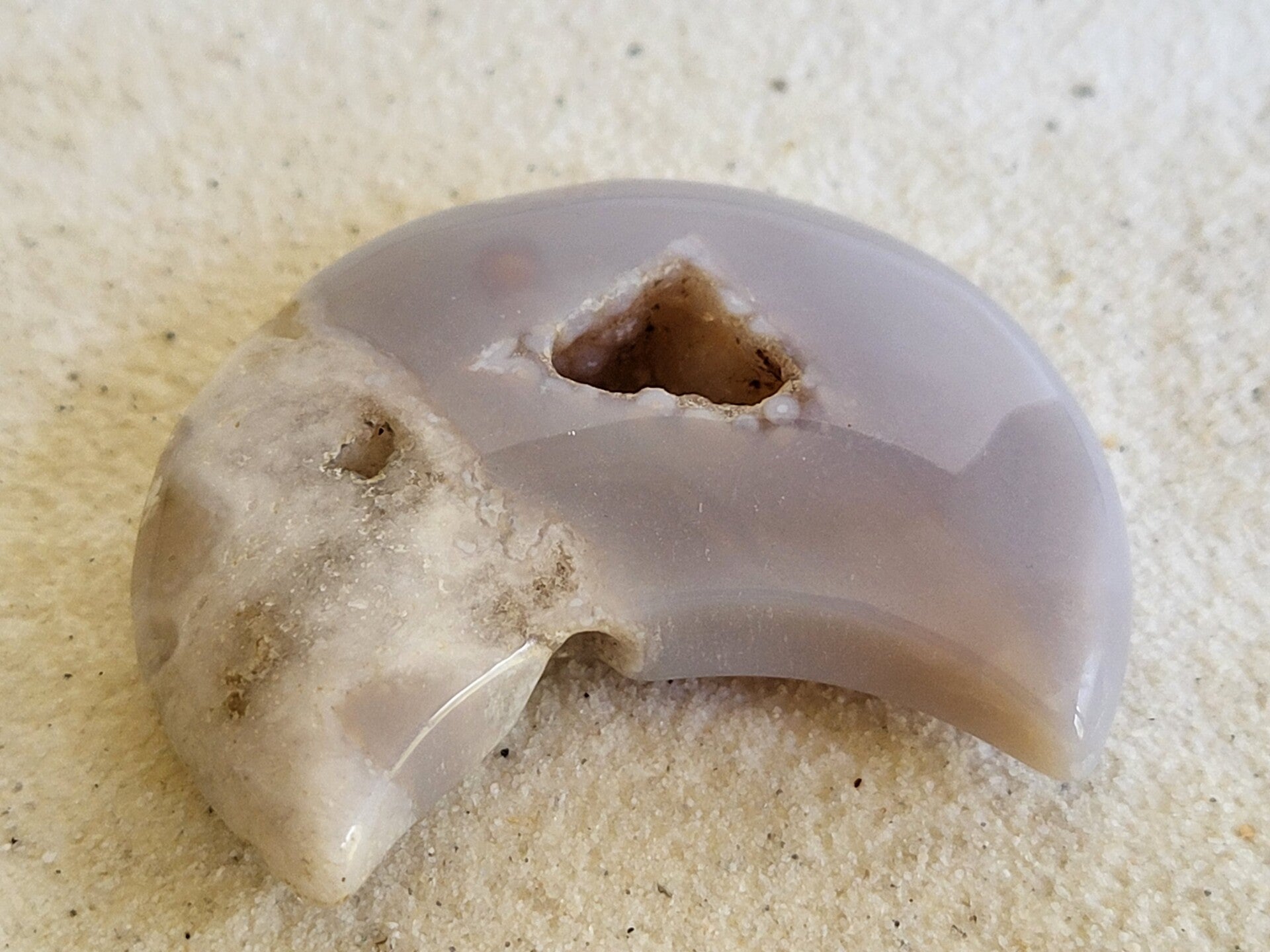 Deze manen van bloemagaat of floweragaat worden ze ook genoemd zijn zo leuk. de afmetingen zijn allemaal rond de 50x40mm. Met in sommige geodes of druzy wordt het ook genoemd