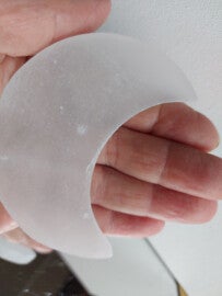 De naam seleniet komt van Selena, de Griekse maangodin en als je een bol van seleniet ziet dan is het helemaal duidelijk waarom. Al in het oude Egypte werd dit al gebruikt voor allerlei gebruiksvoorwerpen maar ook als bouwmateriaal.