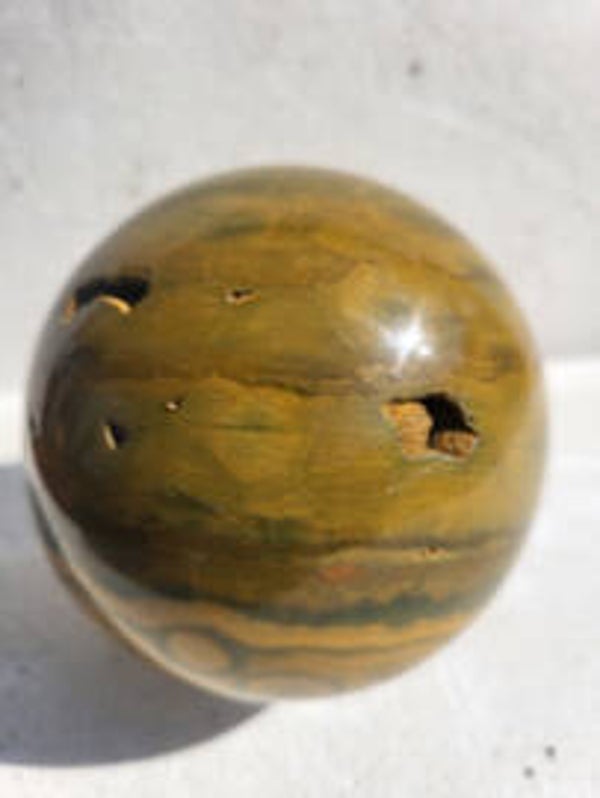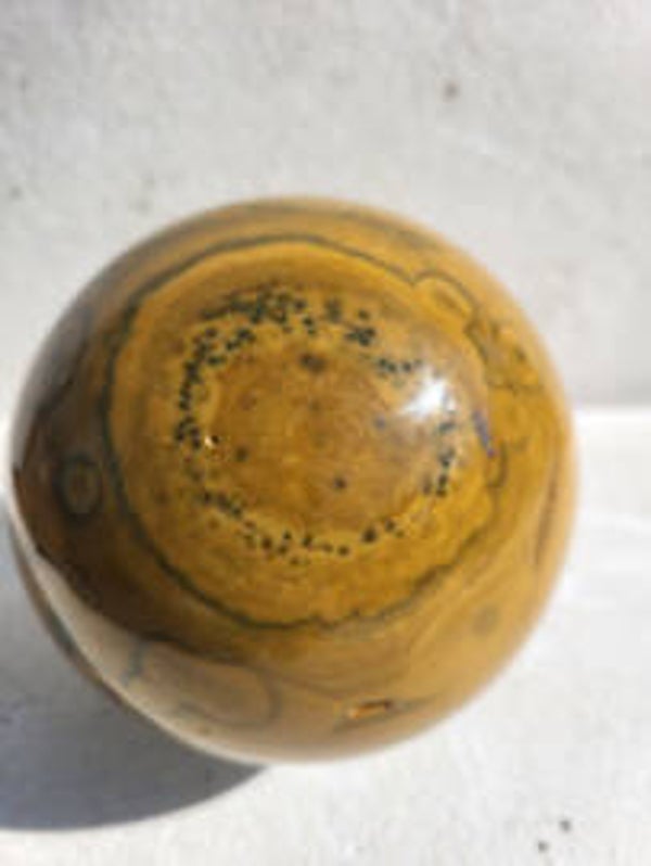 Deze grote polychrome jaspis bol 88mm! wilde gelijk mee....met geodes dus welke verborgen geheimen schuilen er in deze planeet ? ze noemen het jaspis maar is eigenlijk rhyoliet.