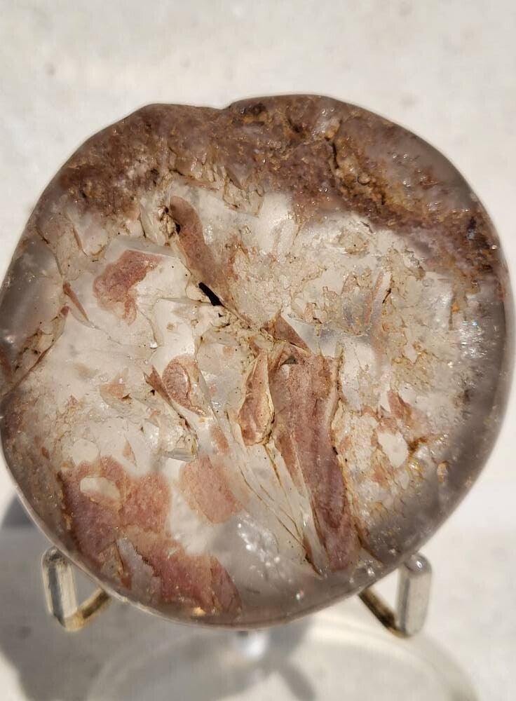 De lodoliet/sjamaankwarts zo goed mogelijk fotograferen maar je moet ze eigenlijk live zien 65x67x31mm 193 gram