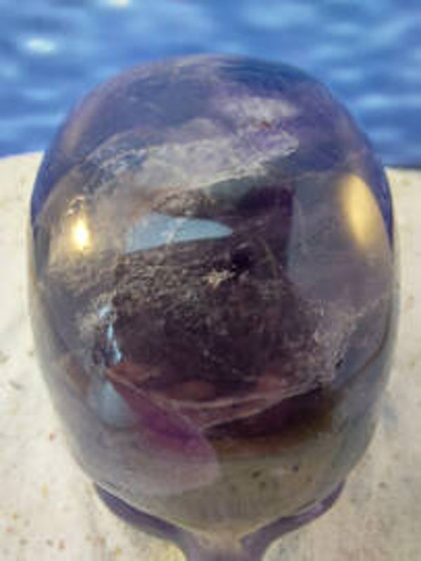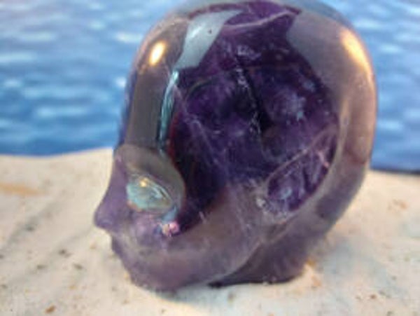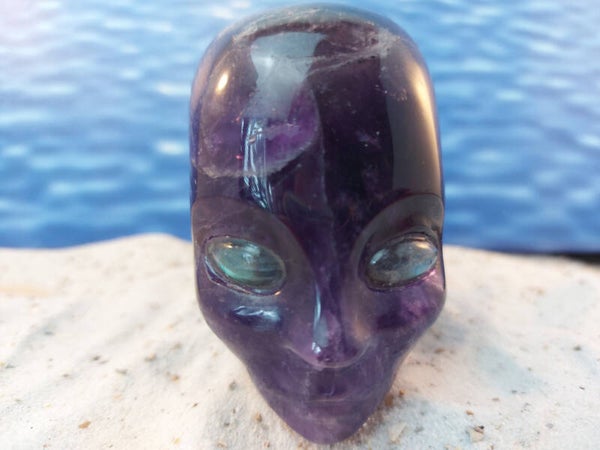 Elven One van prachtig diep paarse amethist met labradoriet ogen.. 79x53x71mm