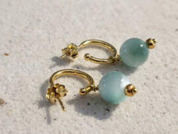 Vermeil (goud op 925zilver)oorstekers met groene angeliet met haar prachtige glans, lengte mm