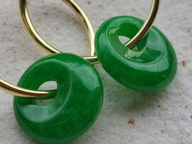 Prachtige flexibele vermeil (goud op 925zilveren) 30mm oorringen met 20mm groene onyx. totale lengte 40mm
