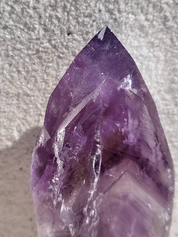 Amethist kalmeert en stimuleert de geest. Door rust te geven krijgt u diepere inzichten. Het zorgt voor betere concentratie en beheersing van uw vaardigheden. Een zeer krachtige en beschermende steen met een hoge trilling. Fijn bij mediteren en blokkeert de negative energieën. Helpt bij stress, onrust, bloedsomloop en slapeloosheid en deze lichte soort ook bij hoofdpijn. Helpt bij geestelijke en lichamelijke reiniging , spiritueel inzicht. Ook geschikt om een ruimte te reinigen en geeft samen met rozenkwarts en bergkristal een harmoniserende energie in uw huis. Reinigt ook andere stenen.