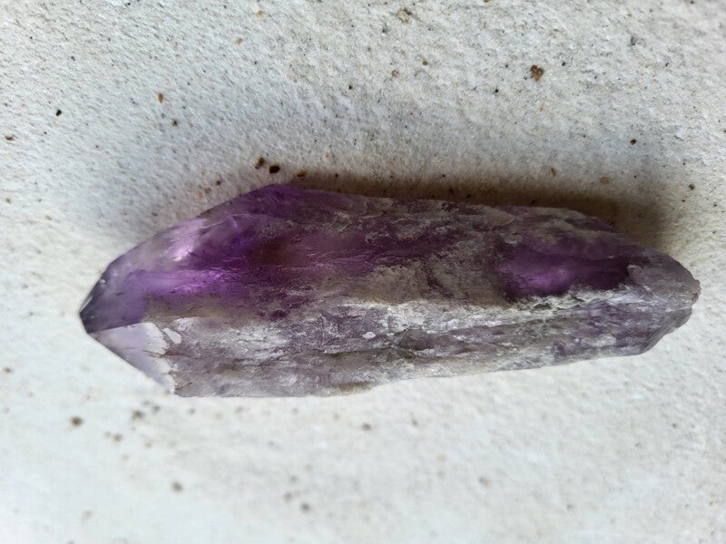 Prachtige toverstaf van amethist.( Aardsengel amethist uit Bahia) Door de punt kan je fijn de energiestraal richten op het te helen gedeelte 113x39x28mm
