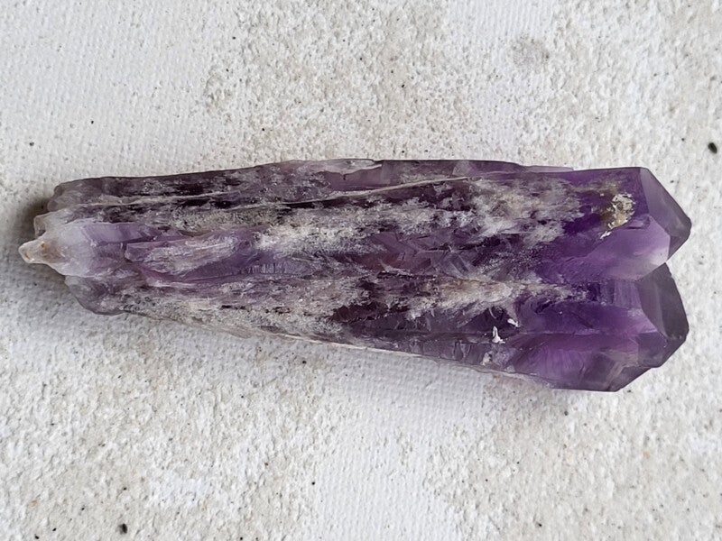 Prachtige toverstaf van amethist.( Aardsengel amethist uit Bahia) Door de punt kan je fijn de energiestraal richten op het te helen gedeelte 87x30x16mmmm 2 kristallen aan elkaar zgn tweelingziel kristal