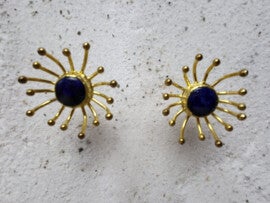 Vergulde ( op messing) oorstekers met lapis lazuli 35mm doorsnede gemaakt door mensen die een eerlijke prijs krijgen voor hun product ( Fairtrade)