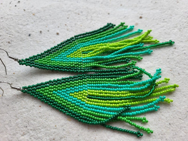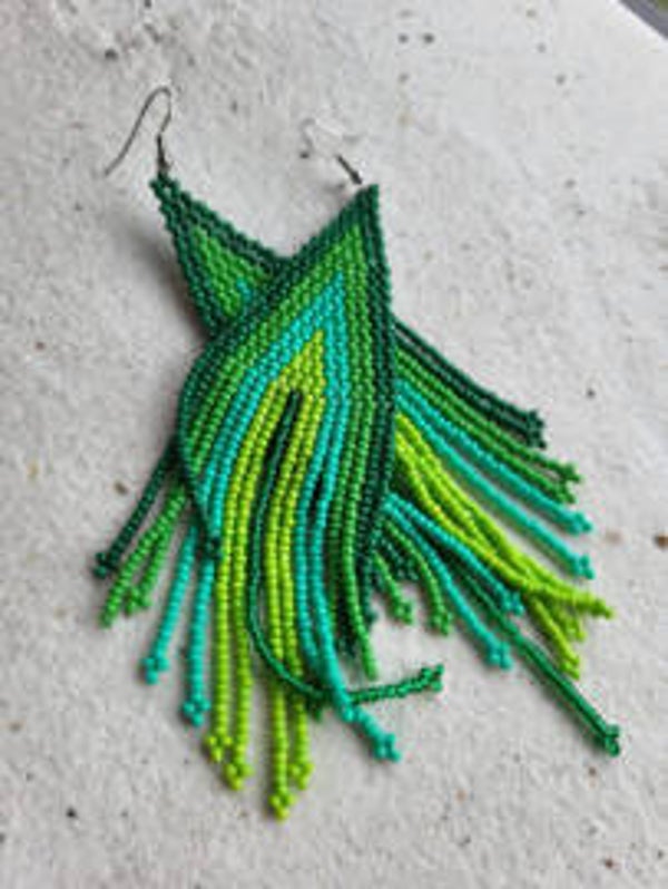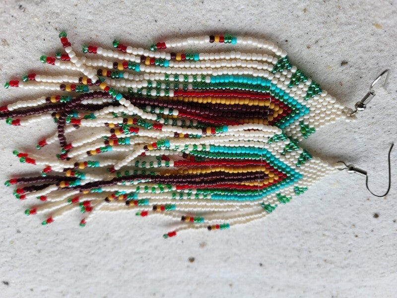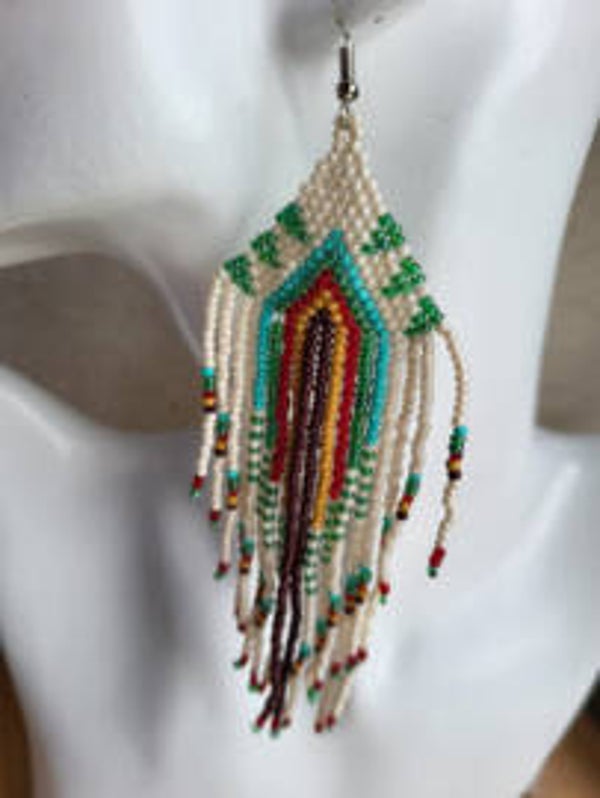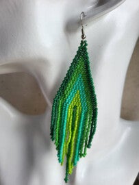 Lange oorbellen met glaskraaltjes 132mm lang met zilverkleurige oorhaakjes, wi je tegen meerprijs 925 zilveren? vraag het mij dan