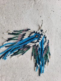 Lange oorbellen met glaskraaltjes 120mm lang met zilverkleurige oorhaakjes, wi je tegen meerprijs 925 zilveren? vraag het mij dan