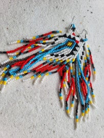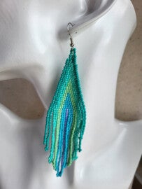 Lange oorbellen met glaskraaltjes 137mm lang met zilverkleurige oorhaakjes, wi je tegen meerprijs 925 zilveren? vraag het mij dan