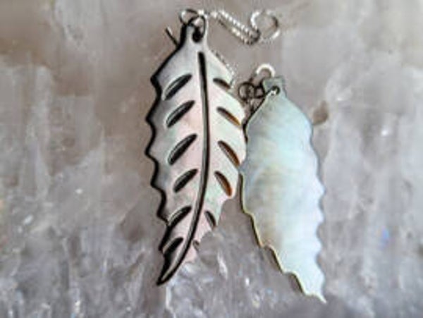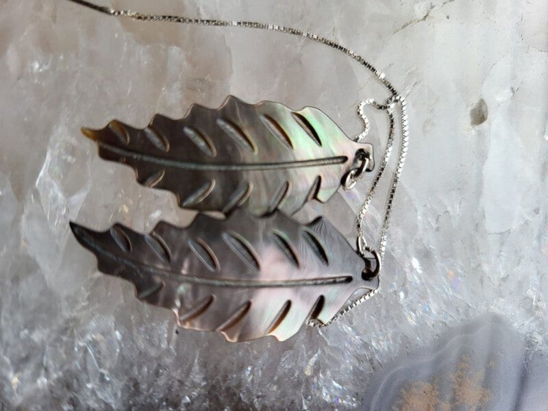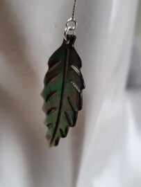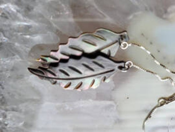 925 zilveren mother of pearl oorbellen. De zgn doortrek oorbellen..blaadje is 38x14mm zeer lichte oorbellen . Lengte van ketting 65mm