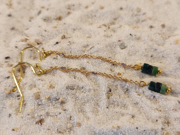 Hoe fijntjes deze goud kleurige oorhangers met jade kraaltjes. Lengte 57mm. Ze zijn handgemaakt ism mijn lichtteam afgestemd op de energie die de koper nodig heeft..