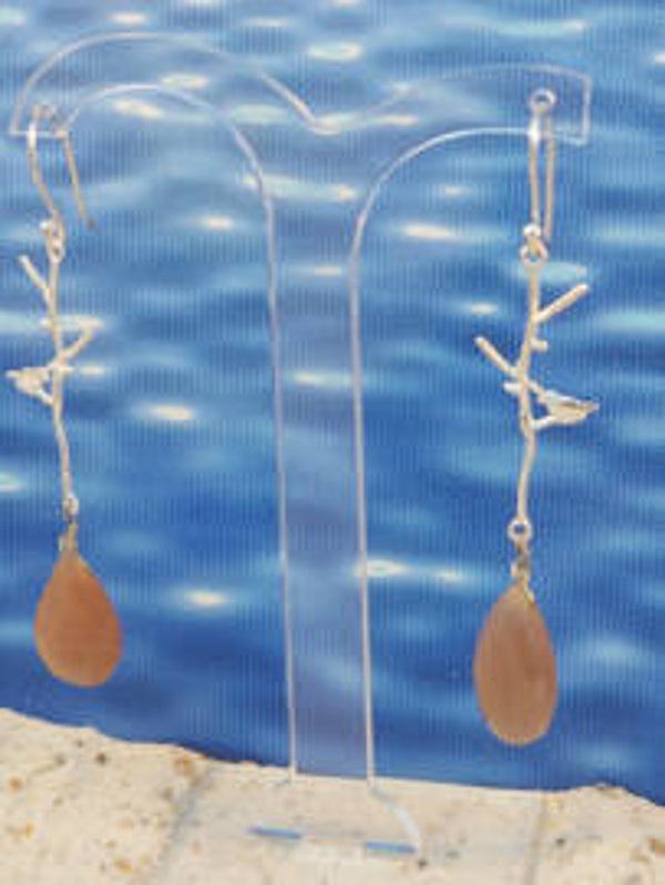 Deze mooie 925 zilveren takjes met vogeltje hebben een bedel van facet geslepen roze maansteen. de totale lengte is 29mm