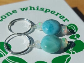 925 zilveren zilveren creolen ( ook kapjes) 15mm met larimar en welo opaal .Totale lengte 31mm . Wil je grotere creolen of haakjes, stekertjes?? Vraag het mij gerust