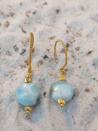 vermeil oorhangers, mooie gedraaide oorhaakjes met larimar ..36mm ( kapjes en kralen zijn ook vermeil)