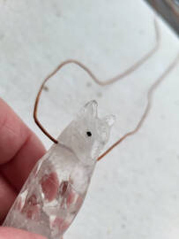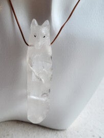 unieke handgeslepen wolven hanger bergkristal 77x19x13mm excl veter ( 1mm)