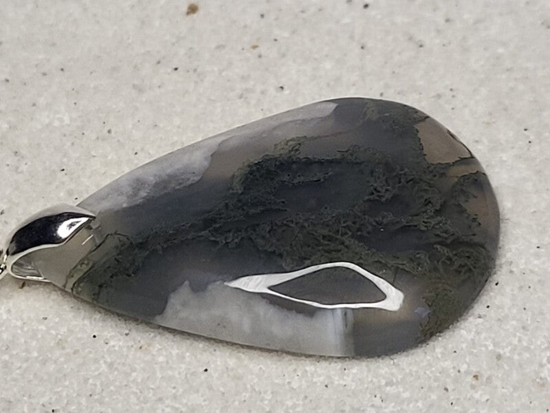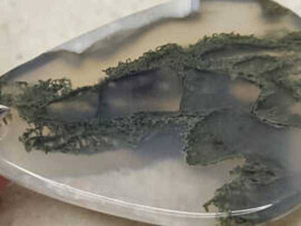 . Mosagaat werkt aardend, stabiliserend en trekt succes, welvaart en voorspoed aan. De zachte en voedende energie van deze steen brengt lichaam, geest en ziel terug naar hun natuurlijke, evenwichtige toestand en brengt stabiliteit en rust op al deze niveaus. Mosagaat is dus heel geschikt om bij je te dragen ter ondersteuning van herstel na ziekte, om tot rust te komen na een periode met veel emotionele onrust of om weer tot jezelf te komen. De steen geeft je het gevoel op je plek te zijn en laat je ware ik naar boven komen. Het laat je de kern en wat écht belangrijk is om je heen en in jezelf zien. Oppervlakkigheden, vooroordelen en zaken die afleiden van de essentie vallen hierbij weg. De steen helpt angsten (bijvoorbeeld claustrofobie en faalangst), stress, nervositeit en zorgen loslaten, maakt optimistisch en helpt je ontspannen. Het is daarom een heel geschikte steen om te dragen tijdens examens. Het versterkt je verbinding met de natuur en de aarde en is ook heel geschikt om in de aarde te stoppen bij bloemen en planten voor wat extra voeding en bescherming. Fysiek werkt mosagaat ontstekingsremmend en heeft het een positieve werking op de weerstand en het immuunsysteem, het lymfestelsel, hart en bloedvaten, de longen, koorts, griep en verkoudheid, (schimmel)infecties, hyperventilatie en stressgerelateerde klachten. Het dragen van de steen tijdens de zwangerschap heeft een positieve invloed op de ontwikkeling van de foetus en de steen kan ondersteunen tijdens de bevalling.