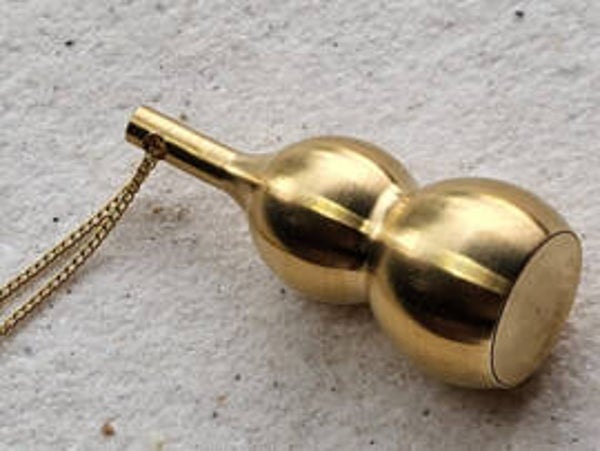 Koperen legering kalabas 39x16mm excl ketting incl bergkristallen...leuk voor kristalletjes, affirmatiebriefje watje met etherische olie of als as sieraad