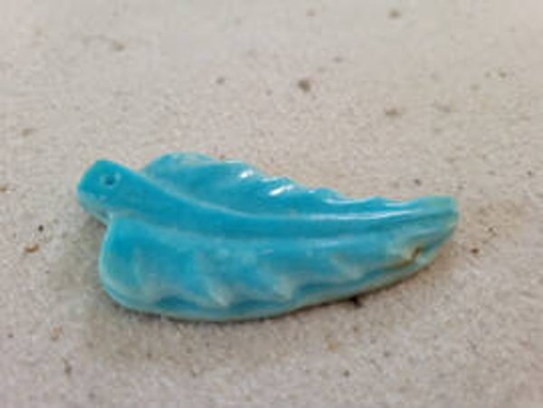 Mooie geslepen blauwe aragoniet hanger in bladvorm 7x30mm , excl veter iWil je een hangoog eraan , vraag het mij :) De veter van 1mm kan je ook los bestellen via de webshop.