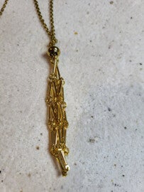 Goudkleurige ketting met een netje waar je een losse steen in kunt doen.. de ketting is 58+5cm