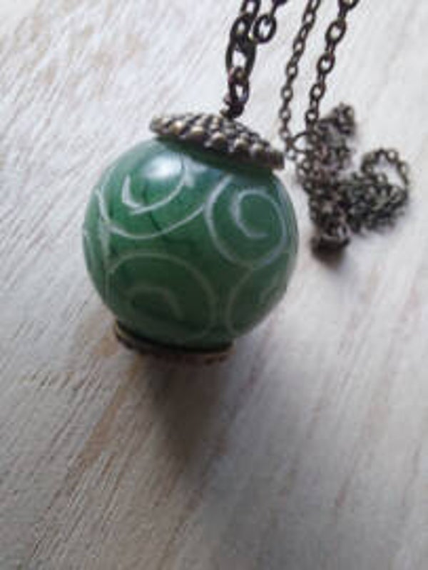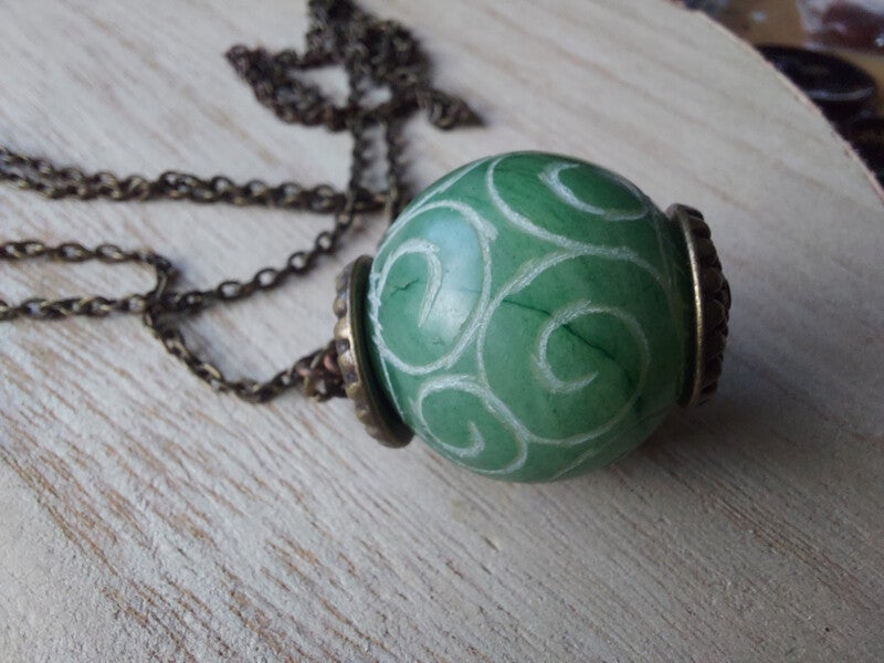 Leuke bewerkte serpetijn bol 25mmmet bronzen kapjes en een 1 meter lange ketting ( wil je hem korter geef dit dan aan bij opmerkingen bij afrekenen)