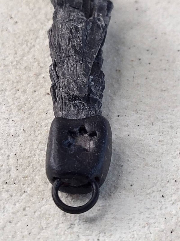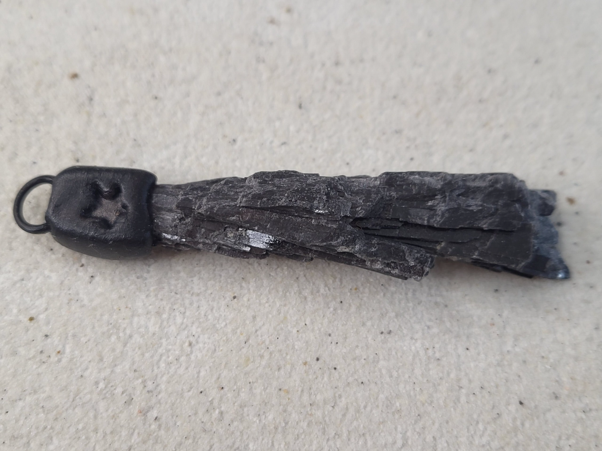 hanger van zwarte kyaniet met zwart hangoog 73x13mm