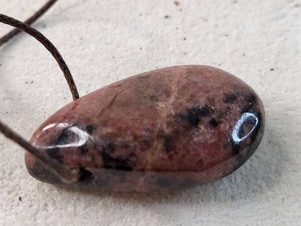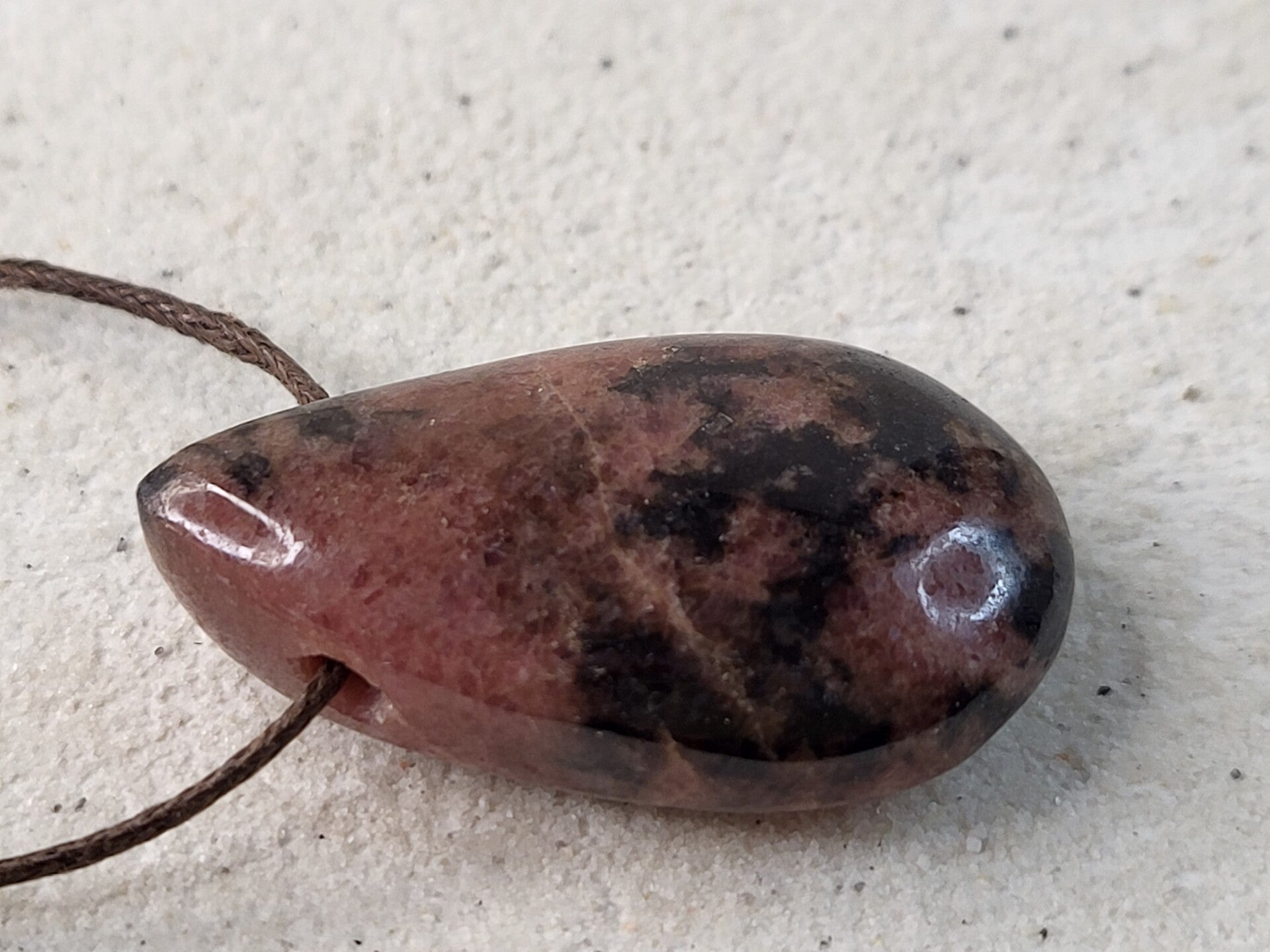 Doorboorde rhodoniet hangers, rond 35x20mm