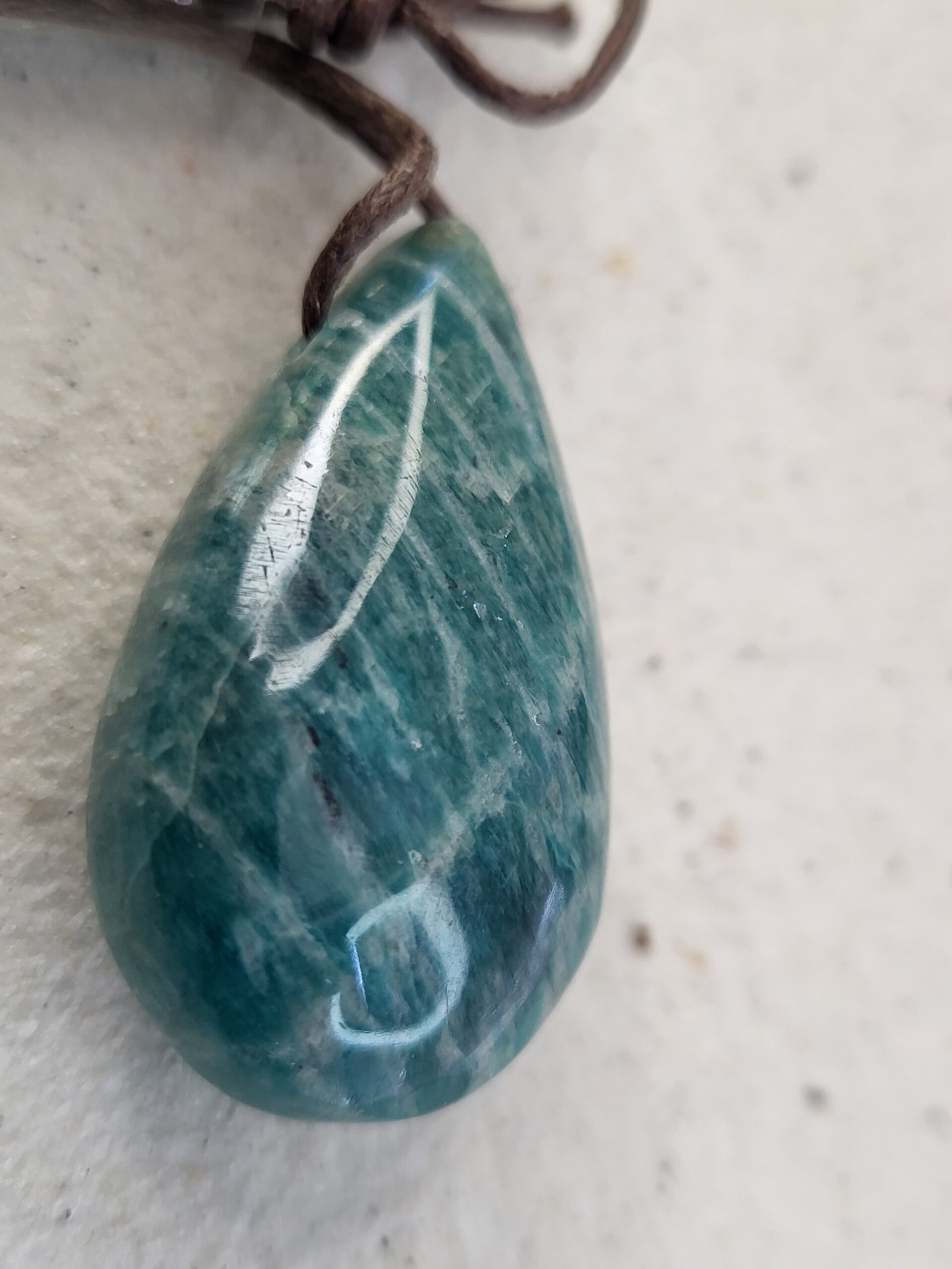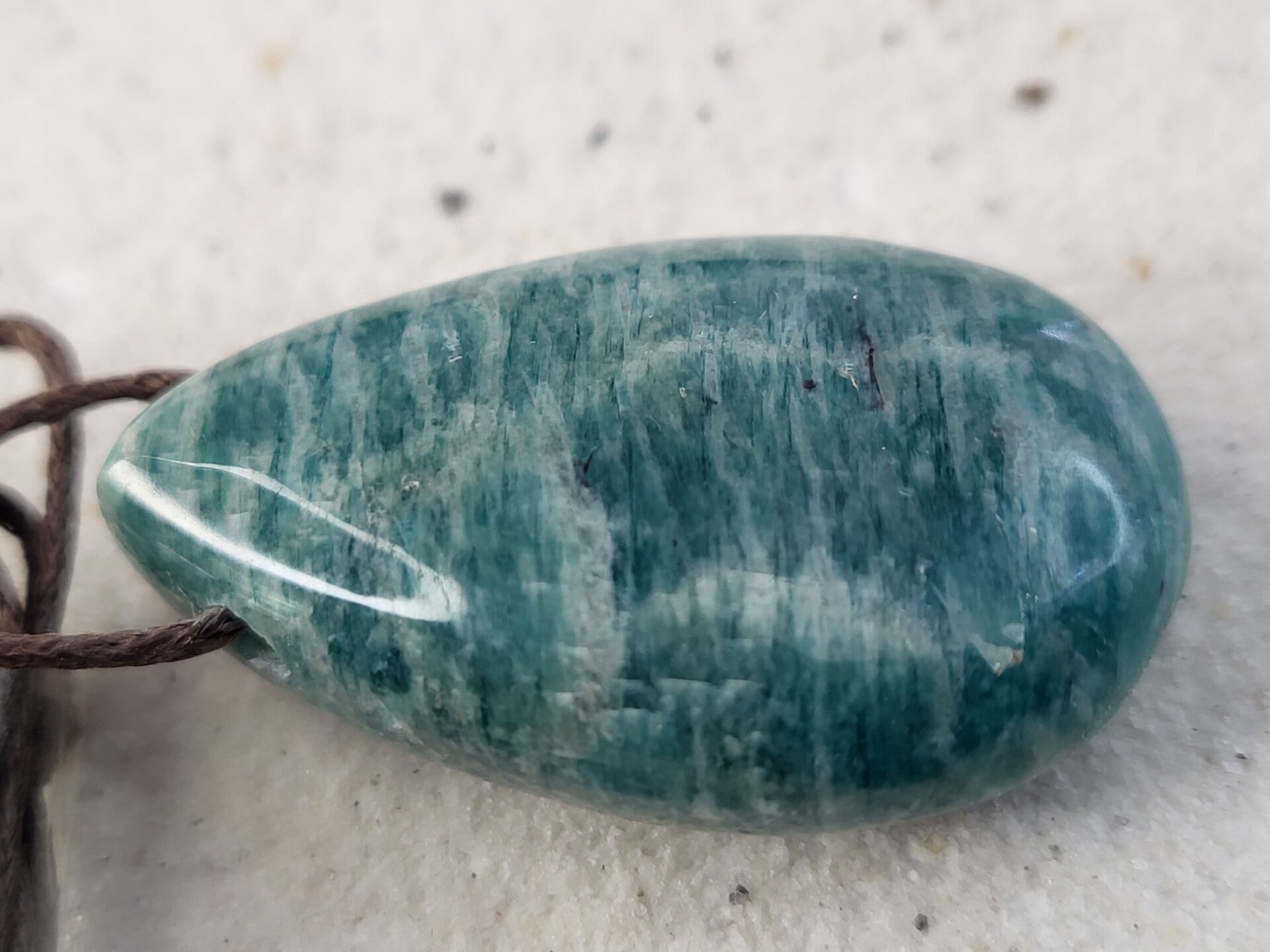 Amazoniet werkt beschermend, brengt balans en harmonie. Het beschermt tegen verschillende schadelijke invloeden van buitenaf zoals bijvoorbeeld elektromagnetische straling (van mobiele telefoons, computers en dergelijke), milieuvervuiling, chemicaliën en wateraders. Het beschermt ook tegen overprikkeling en kan ondersteunend werken voor hooggevoelige of hoogsensitieve mensen en kinderen. De steen helpt de emotionele balans terug vinden bij stemmingswisselingen, helpt negatieve emoties als angst, boosheid, verdriet en zorgen verminderen en heeft een positieve werking op depressie en bipolaire stoornissen. Het ondersteunt bij trauma’s, liefdesverdriet en het verlies van dierbaren en het brengt verstand en gevoel in harmonie met elkaar. Het helpt je weer stappen in de goede richting zetten, je problemen aanpakken en voor jezelf op komen als je het gevoel hebt vast te zitten of als je situatie uitzichtloos lijkt. Lichamelijk werkt amazoniet krampopheffend en heeft een positieve werking op de hersenen en het zenuwstelsel, hypofyse, thymus, de stofwisseling, huid, tanden, botten, osteoporose en verbetert de opname van calcium.