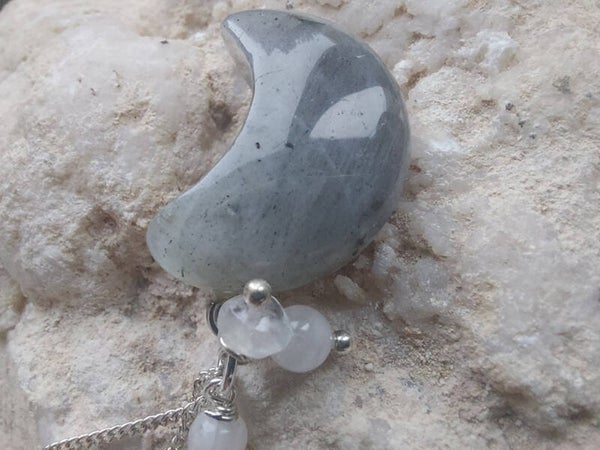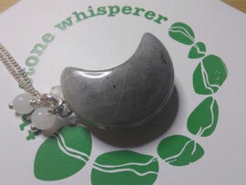 labradoriet maantje met regenboogmaansteen hangertje 34mm