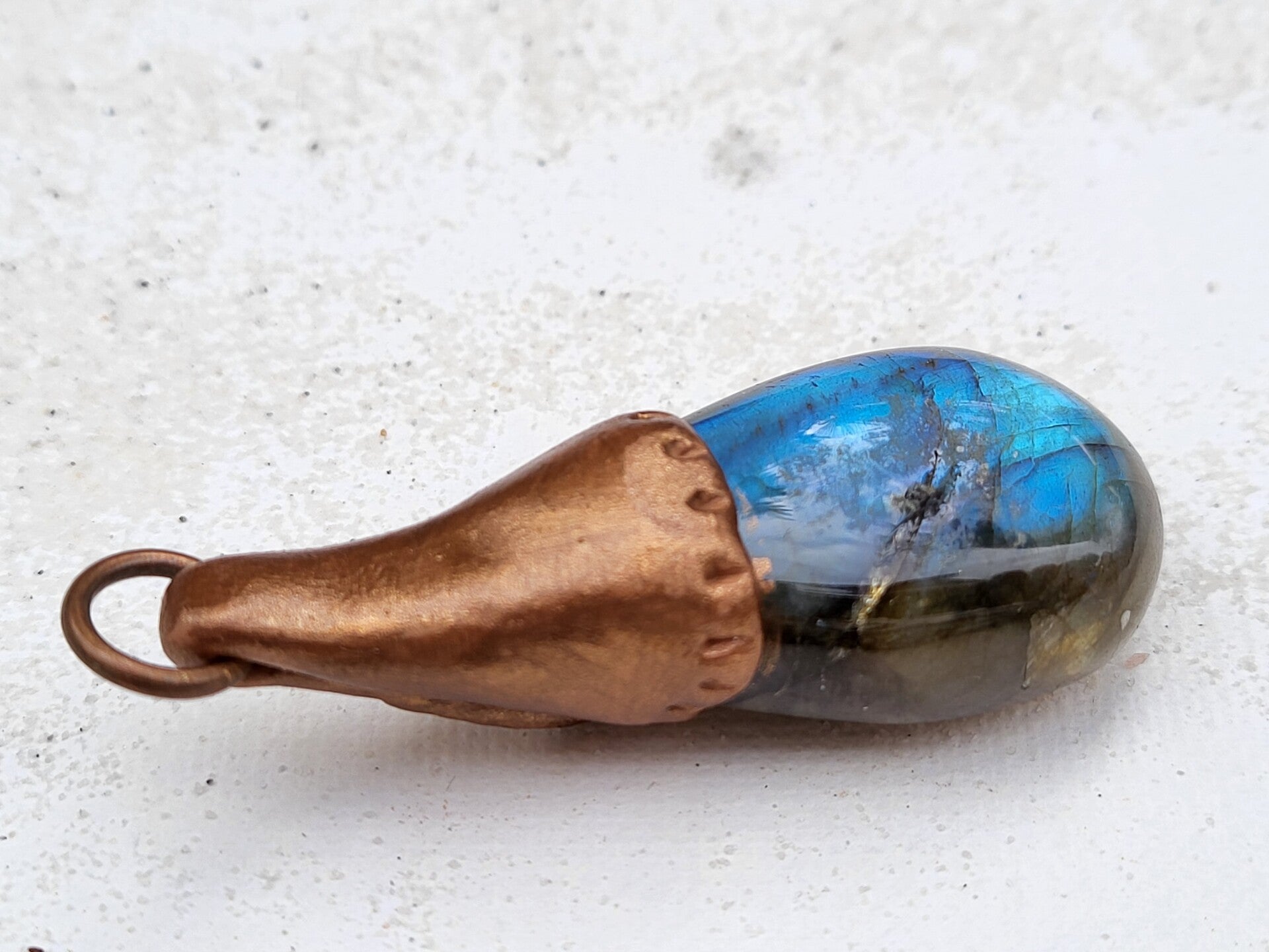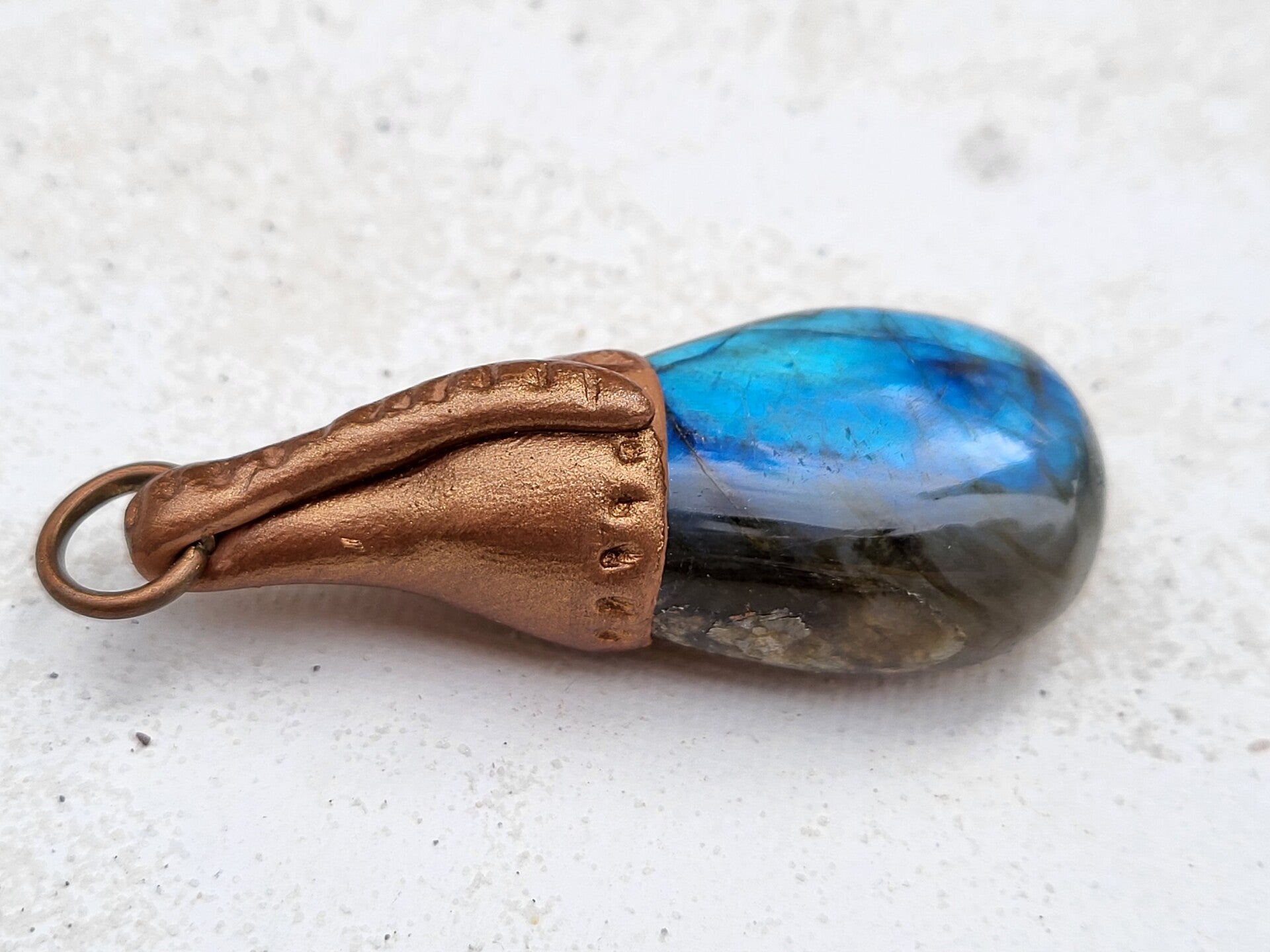 Labradoriet is een sterk beschermende en spirituele steen. Het beschermt het eigen energieveld (aura) tegen negatieve invloeden uit de omgeving en mensen die energie bij je wegnemen. De steen vermindert angst en geeft kracht, (zelf)vertrouwen en doorzettingsvermogen. Het versterkt de intuïtie en mediamieke gaven. De steen maakt contact met het onderbewuste en brengt vergeten herinneringen boven. Labradoriet stimuleert fantasie en creativiteit en helpt ideeën te ontwikkelen. De steen werkt bloeddrukverlagend en kalmerend, reguleert de stofwisseling en heeft een positief effect op verkoudheid, jicht, reuma, de ogen en op een onregelmatige menstruatie en menstruele klachten