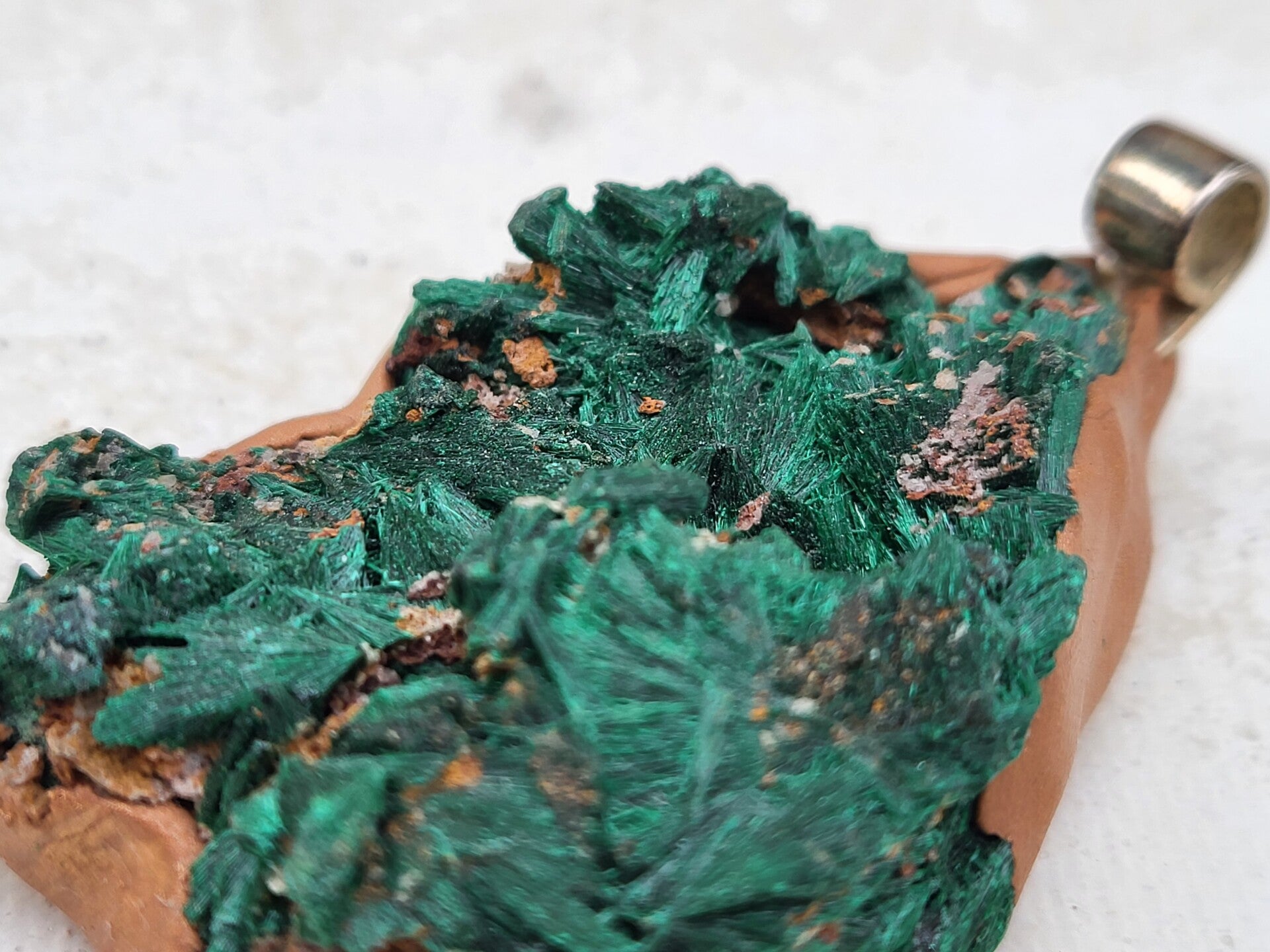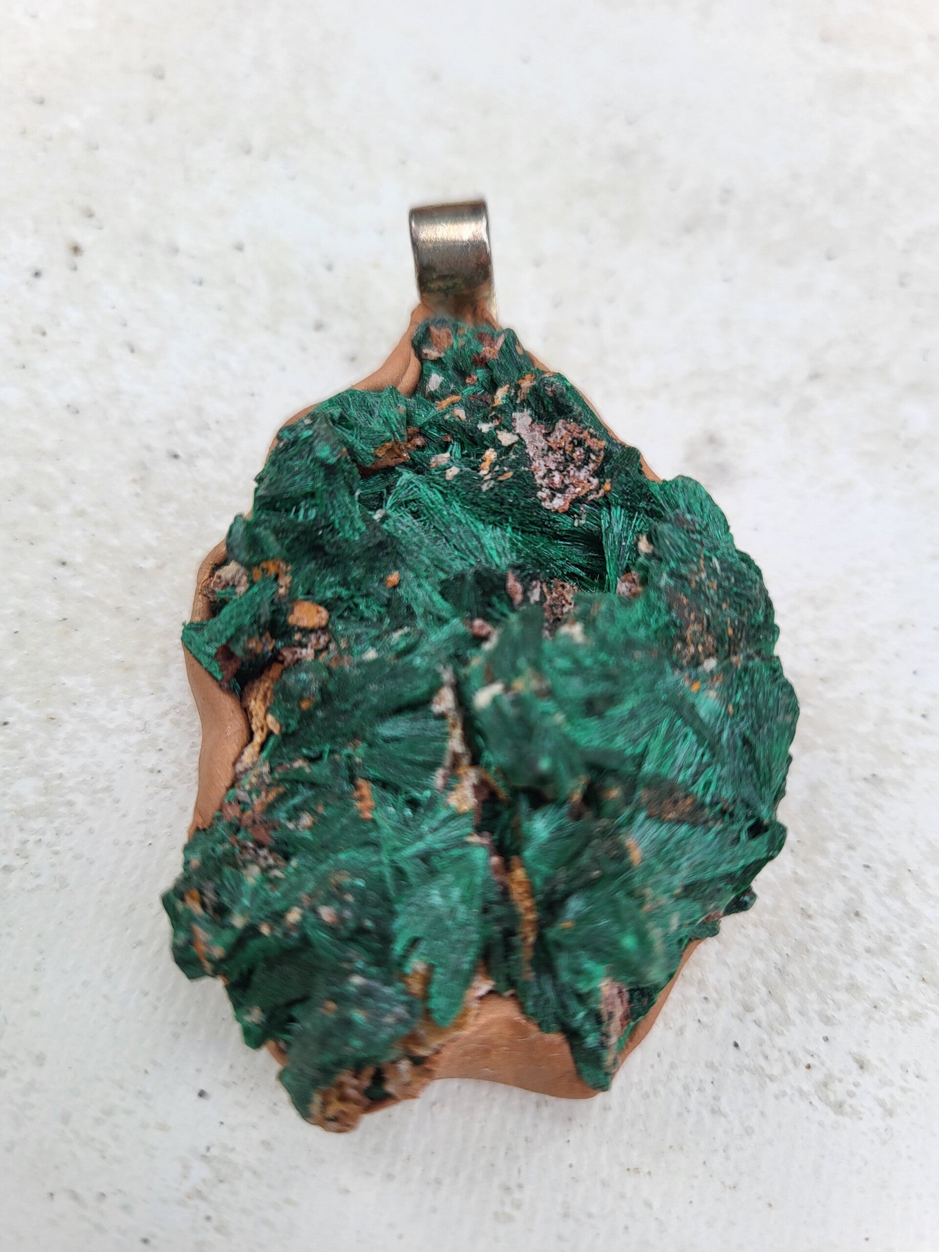 Hanger 60x36mm naald of fluweelmalachiet ...nu kan je deze malachiet als sieraad dragen omdat hij geen contact heeft met de huid