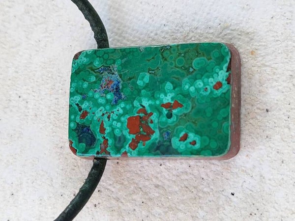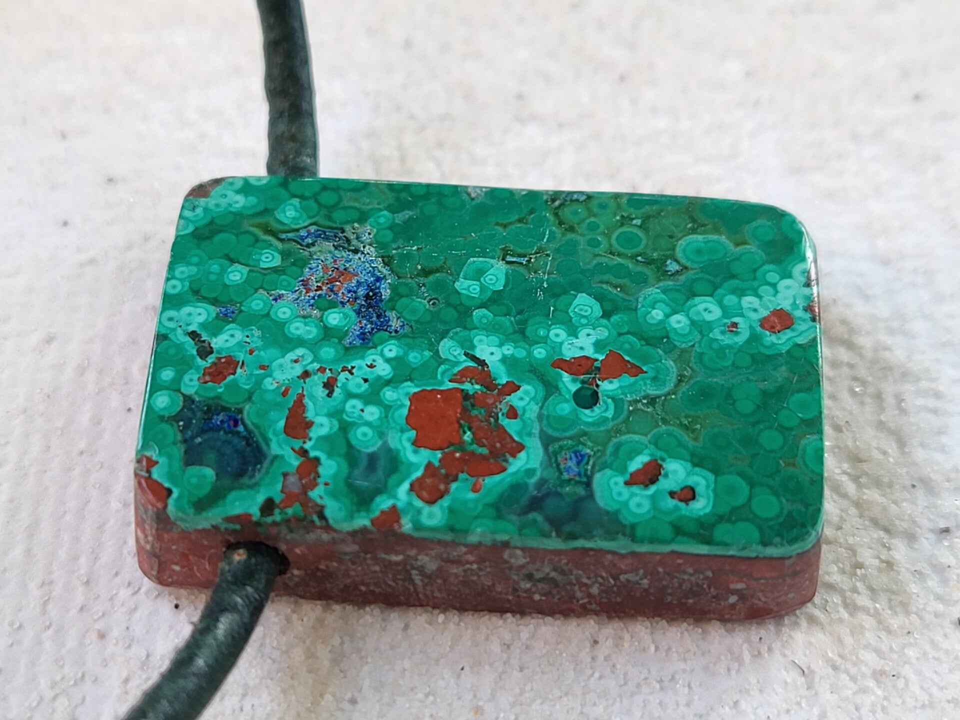 Bijzondere azuriet malachiet hanger 27x18mm aan turkooi lederen ketting met slotje 56cm Vindplaats Morenci Arizona