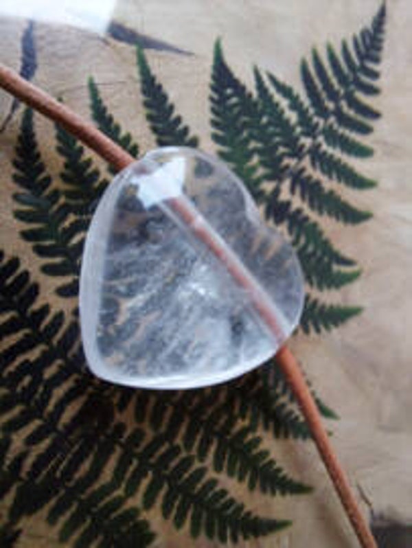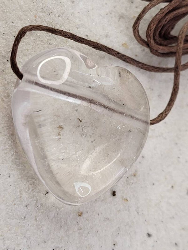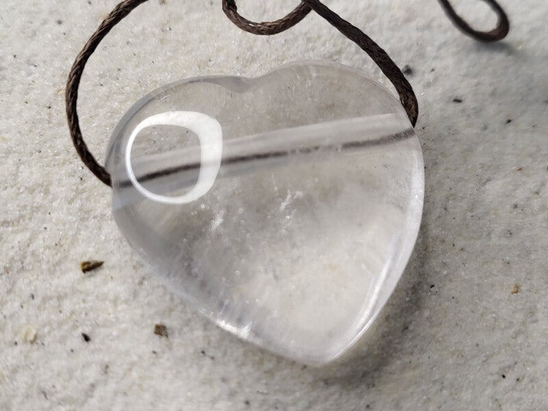 Bergkristal hart hanger doorboord 29x29mm incl bruin waxkoord