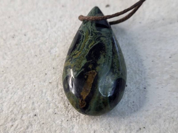 40 mm doorboorde hanger kambaba jaspis incl bruin waxkoord