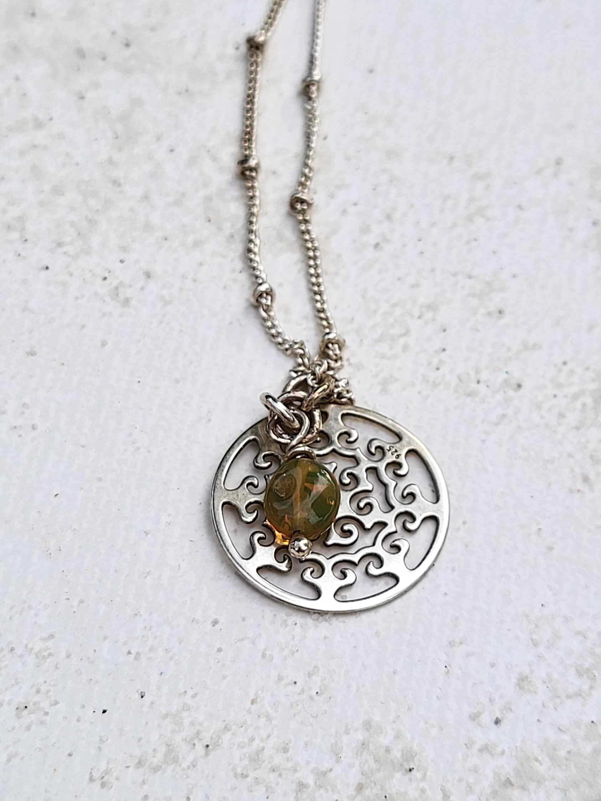 50cm 925 zilveren bolletjes ketting met 925 zilveren bedel en een edelopaal bedel: prachtig die vuurstukjes erin