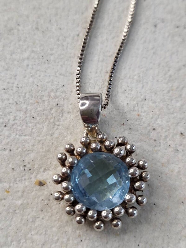 Prachtige 925 zilveren hanger met facet geslepen blauwe topaas ( juwelierskwaliteit dus mooiste stenen en mooi kwaliteit zilver ) 25x17mm incl 40cm (+5cm verlenging)ketting