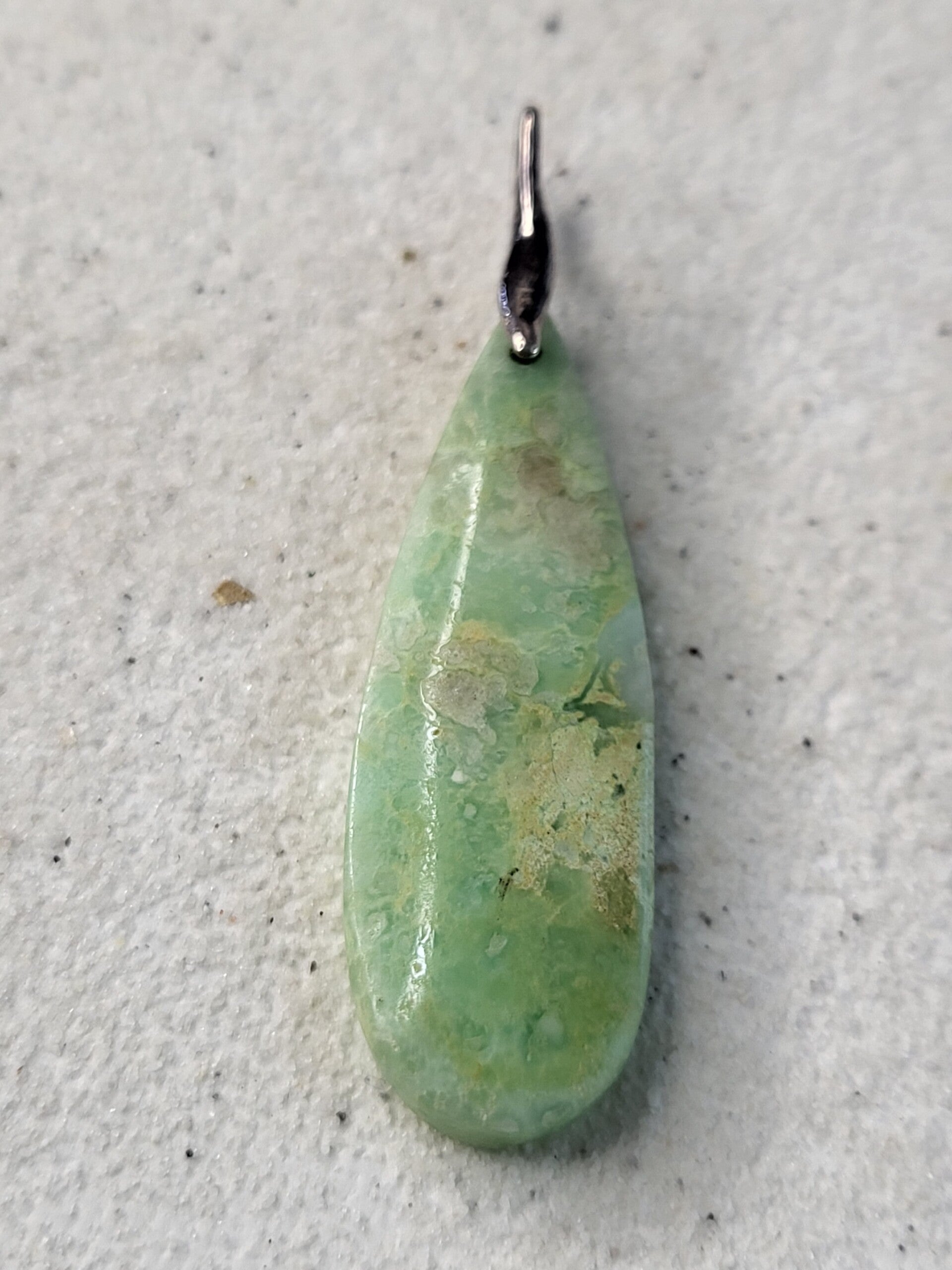 Totale lengte is 50mm, 13mm breed .. Chrysocolla, 925 zilveren oogje Chrysocolla zorgt voor rust, balans en innerlijk evenwicht. Het of kalmeert je of werkt activerend al naar gelang wat er op dat moment nodig is. Geeft dus energie als je je moe en lusteloos voelt en geeft kracht zodat je de dingen kunt aanpakken. Werkt dus kalmerend in stressvolle situaties of als je nerveus bent. Het helpt negatieve emoties zoals schuldgevoel en (liefdes)verdriet verminderen. De steen zet aan tot zelfreflectie, stimuleert een neutrale en open houding en laat de waarheid naar boven komen. Het bevordert helderheid van geest, maakt creatief en bevordert communicatie. Spiritueel absorbeert het negatieve energie en reinigt en activeert de chakra’s. Fysiek werkt chrysocolla op vele gebieden. Het werkt ontgiftend, verkoelend, bloeddrukverlagend, koortsverlagend, ontspannend en krampopheffend. Het heeft een positieve werking op lever, schildklier, longen, nieren, darmen, keel, amandelen, artritis en artrose, fibromyalgie, brandwonden, botten, spijsvertering en reguleert de insuline productie. De steen werkt kramp opheffend bij allerlei soorten krampen zoals menstruatie en darmklachten.