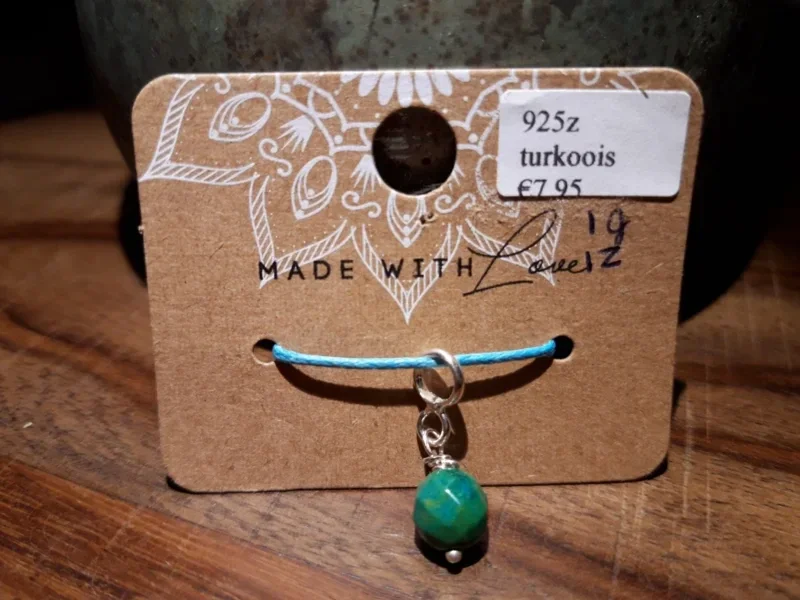Turkoois is een sterk geneeskrachtige, zuiverende en beschermende steen. Het brengt evenwicht: turkoois kan kalmerend werken en voor innerlijke rust zorgen maar werkt ook vitaliserend bij uitputting. Het heeft een positieve werking op depressie, stemmingswisselingen, apathie en paniekaanvallen. Turkoois werkt inzichtgevend en laat zien dat je verantwoordelijk bent voor je eigen geluk en gaat hierdoor een slachtofferhouding en zelfdestructief gedrag tegen. Het bevordert creativiteit bij het oplossen van problemen, empathie en (romantische) liefde. Turkoois beschermt tegen negatieve energie, straling, invloeden en stoffen van buitenaf, werkt zuiverend en brengt de chakra’s in balans. Fysiek werkt de steen pijnstillend, krampopheffend, ontstekingsremmend en ontgiftend. Het ondersteunt de opname van voedingsstoffen en heeft een positieve werking op reuma, jicht, maag, de ogen, het immuunsysteem en virusinfecties.