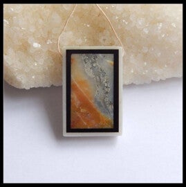 Deze unieke hanger is 40x27x7mm . Gemaakt van een rand witte jade*, obsidiaan en binnenin amazoniet. Incl lederen ketting