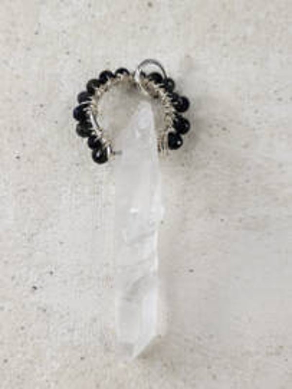 Bergkristal hanger/energytool met donkergroene toermalijn 72x28mm