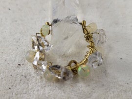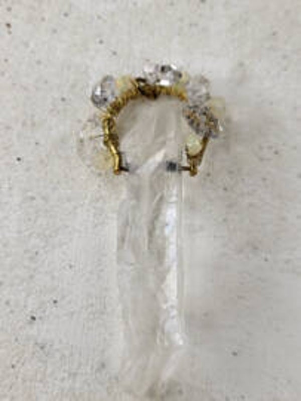 Bergkristal hanger/energytool met Welo opaal en herkimer diamantjes 72x30mm. Gebruik deze als hanger, pendel of healingtool